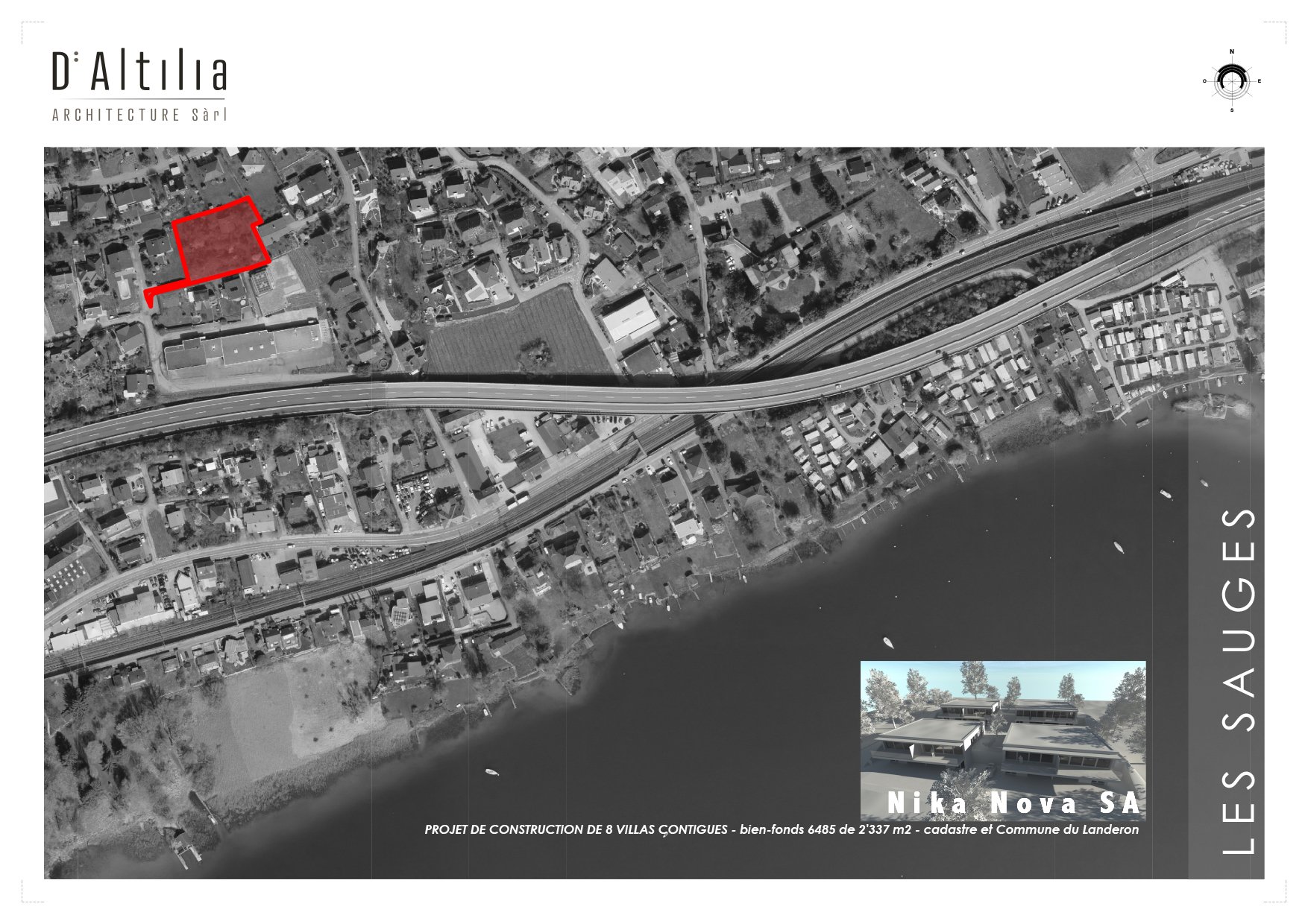 Situé au Moulin-de-la-Tour, le lotissement » Les Sauges » se trouve à 2min du réseau autoroutier. Le Landeron, compte une gare CFF placée sur la ligne Neuchâtel-Bienne, centres commerciaux, écoles sports et loisirs, restaurants, et le lac sont rapidement accessibles en voiture.